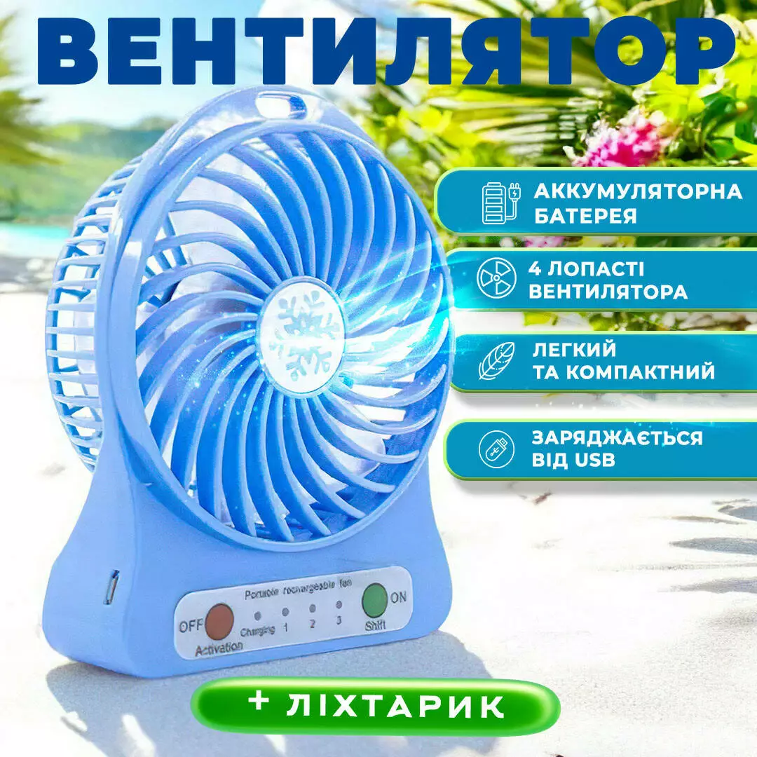 Портативный usb мини вентилятор Mini Fan ручной на аккумуляторе для дома и авто переносной синий