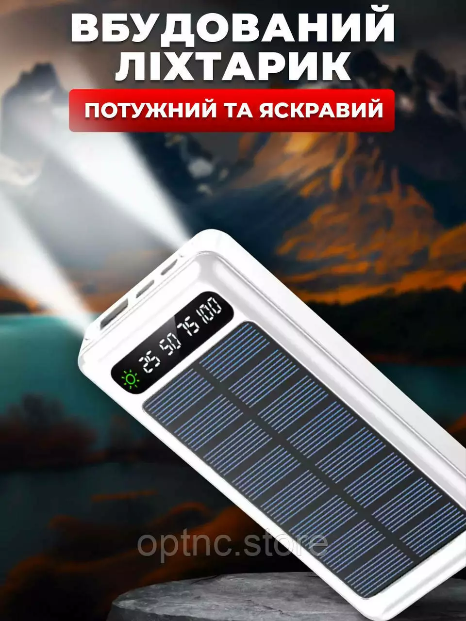 Повербанк с фонариком и солнечной батарей 50000 mAh 4 кабеля быстрая зарядка (Белый)