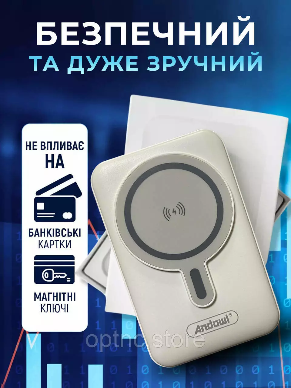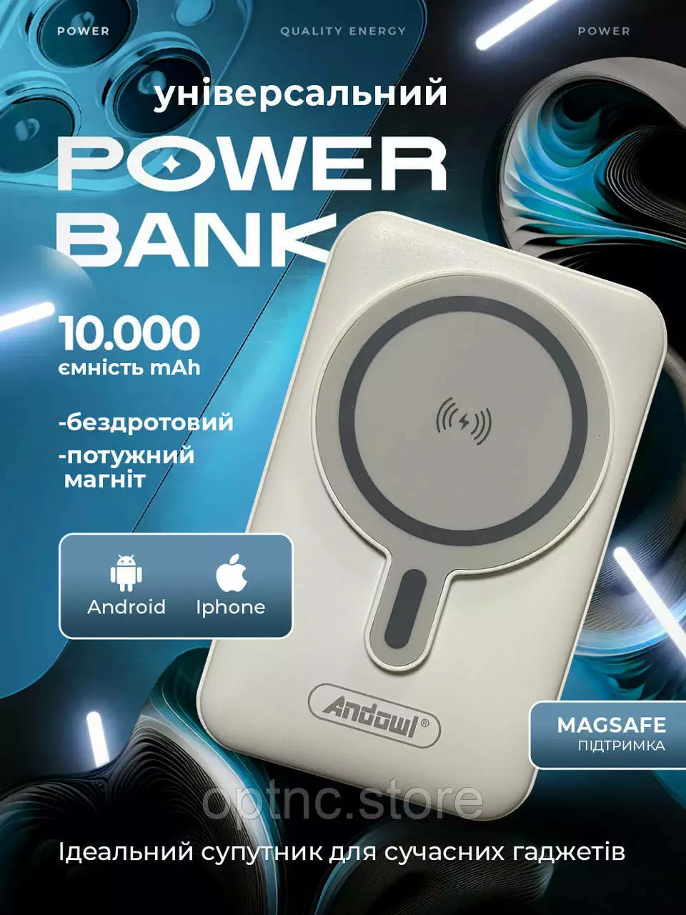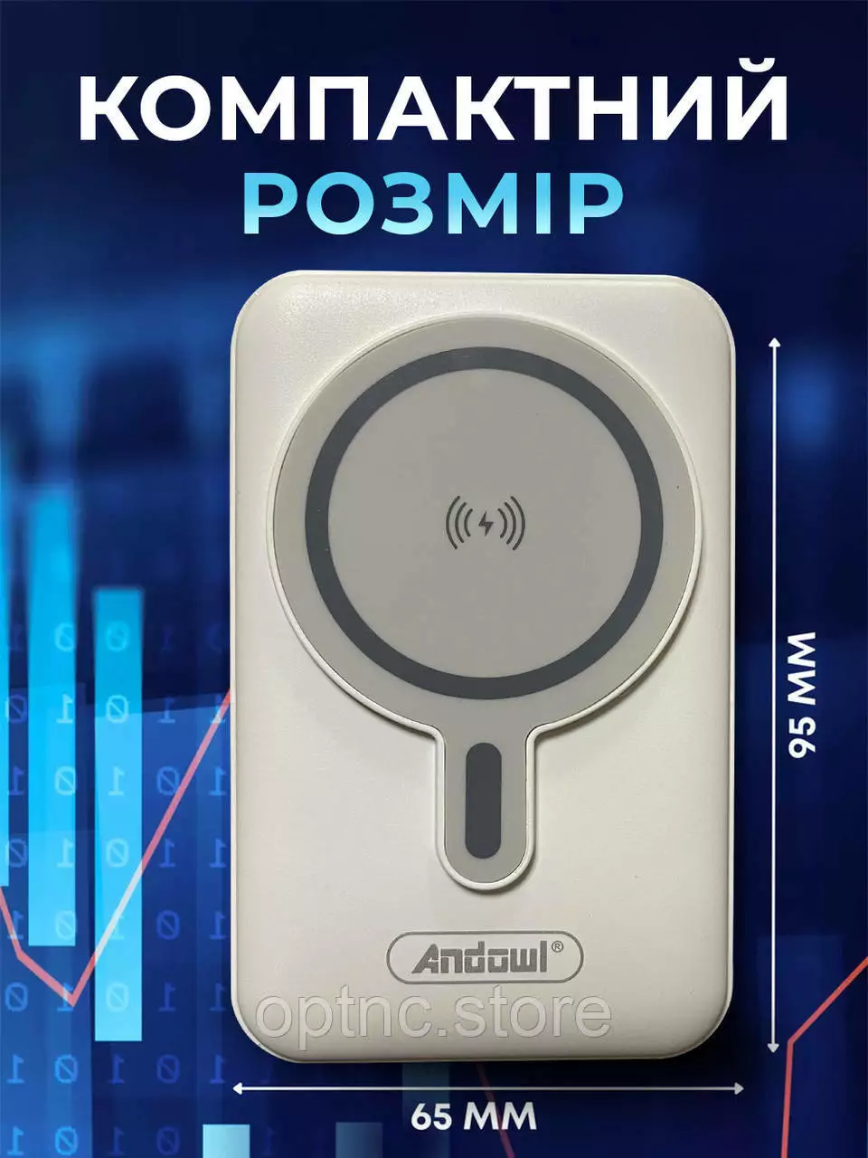 Повербанк с магсейфом 10000 mAh power bank magsafe 3 выхода Andowl портативный (Белый)