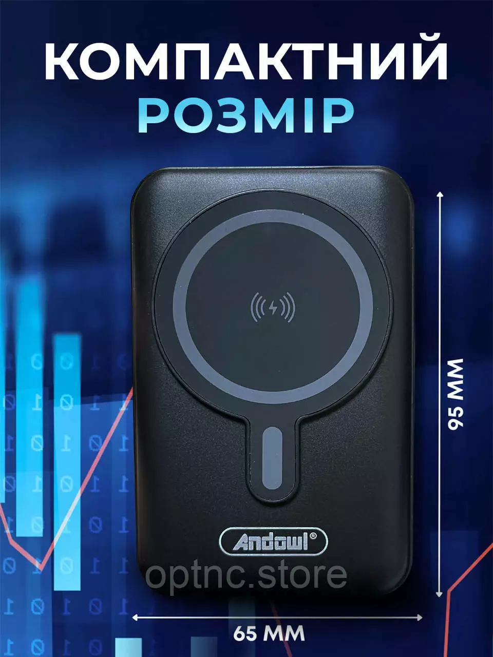 Повербанк с магсейфом 10000 mAh power bank magsafe 3 выхода Andowl портативный (Чёрный)