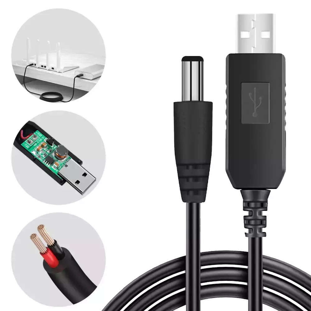 Повышающий кабель работает практически от любого повербанка, даже от не имеющего быстрой зарядки, так как шнур содержит внутри встроенную плату повышающую напряжение до 9 вольт. Совместим с большинством моделей WiFi роутеров, а также любых других устройств с соответствующими параметрами. Кабель имеет простое подключение без дополнительных настроек: USB штекер вставляется в Powerbank, а DC штекер в устройство которое нужно запитать.
