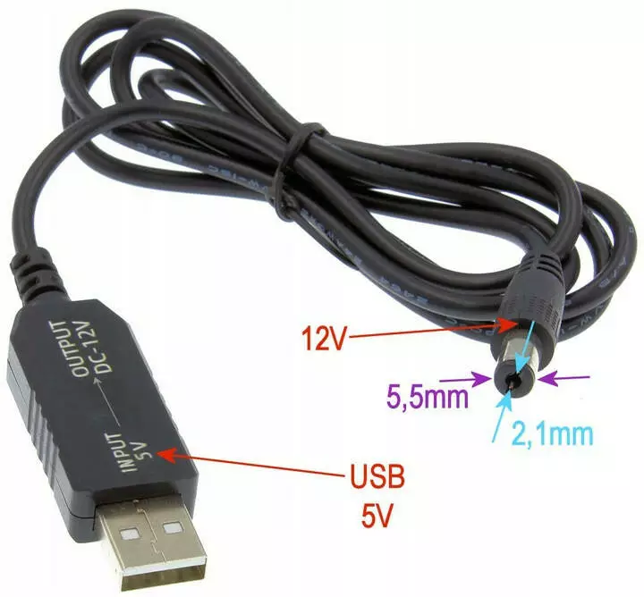 Повышающий переходник – кабель для роутера от повербанка USB 5V to 12V DC 5.5*2.1