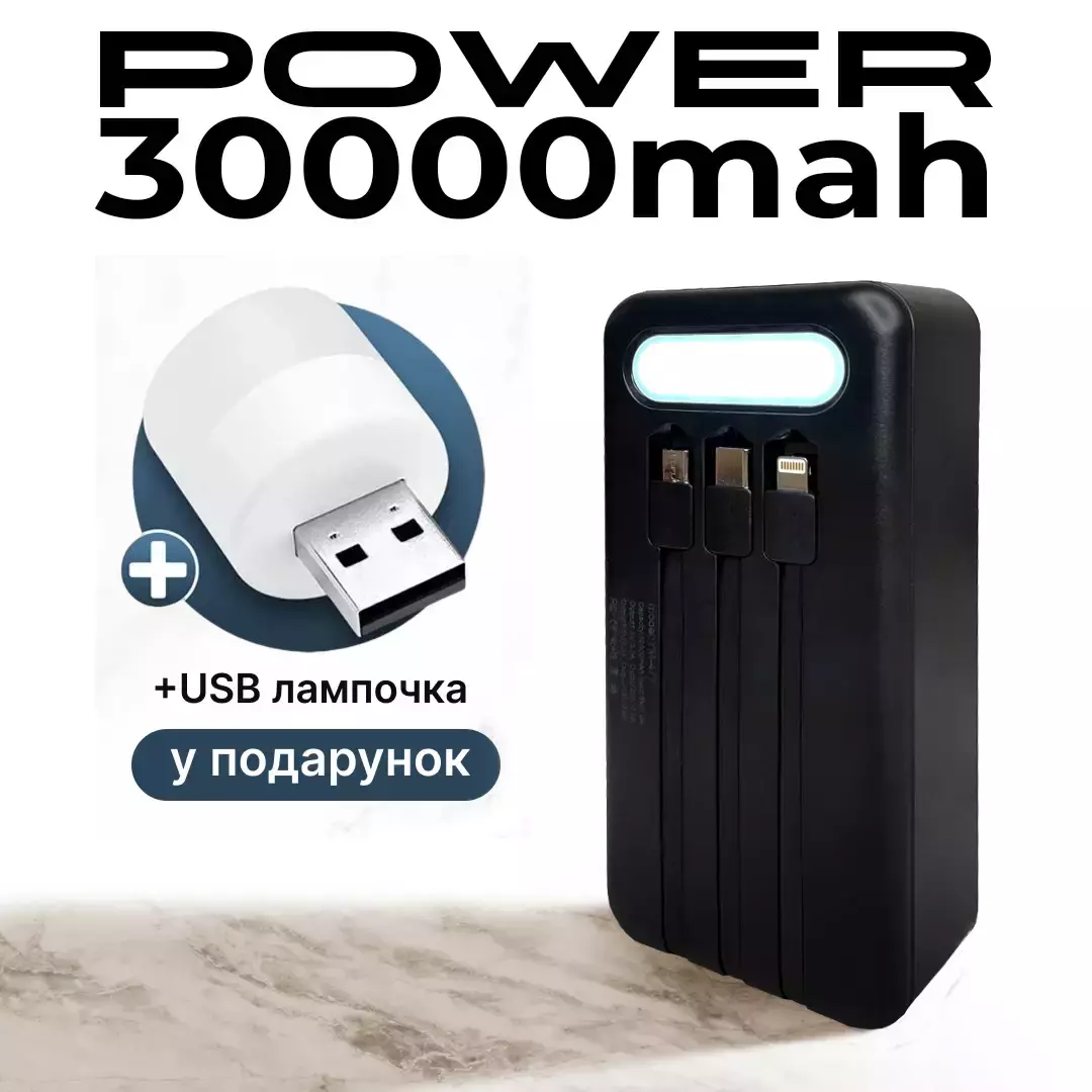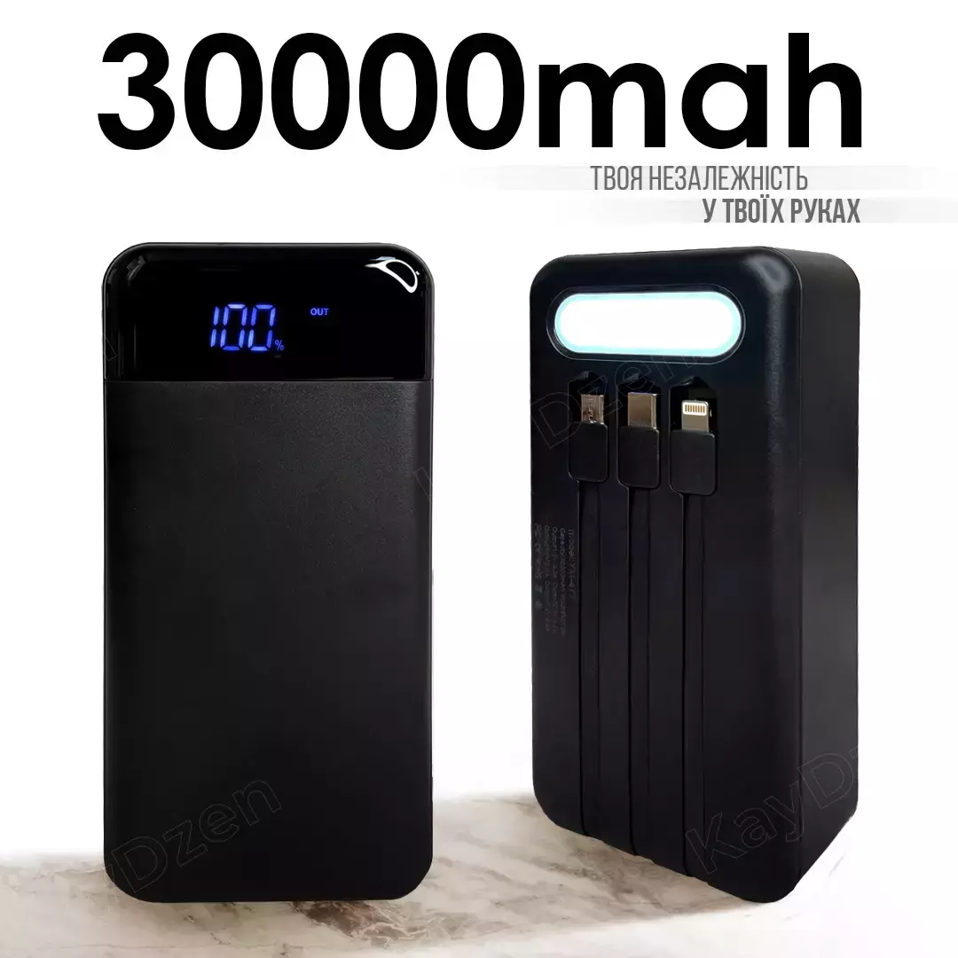 - Превосходная Емкость: 30000 mAh, что гарантирует длительное время работы и независимость от розеток.