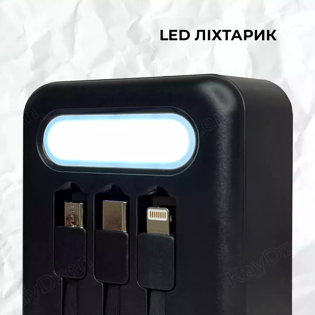 - Дополнительное Удобство: Встроенный светодиодный фонарь превратит ваш Power Bank в спасательный островок света в темноте, обеспечивая дополнительную безопасность в ночное время или при отключении электроэнергии.