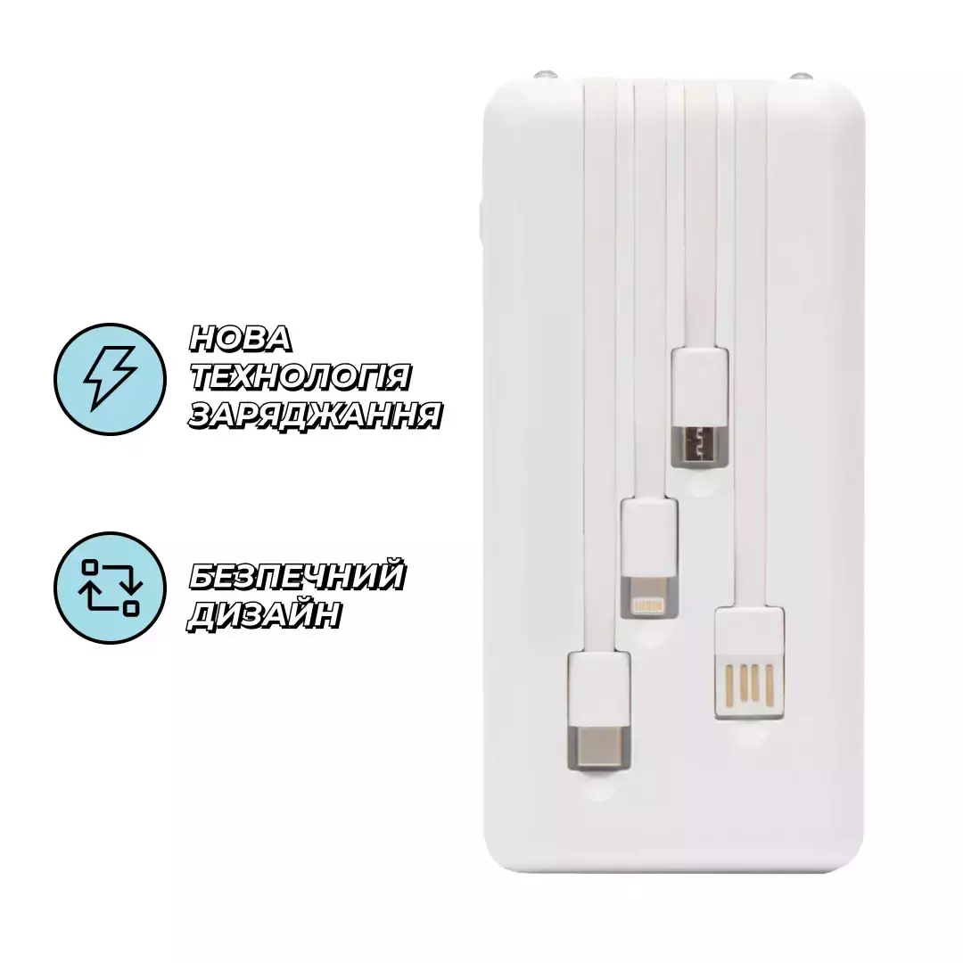 - Комплектация: Power Bank, Коробка,; Кабели (micro USB, USB-C, Lightning), Инструкция