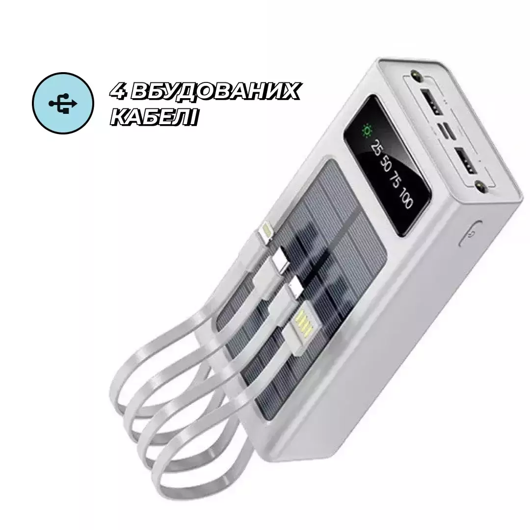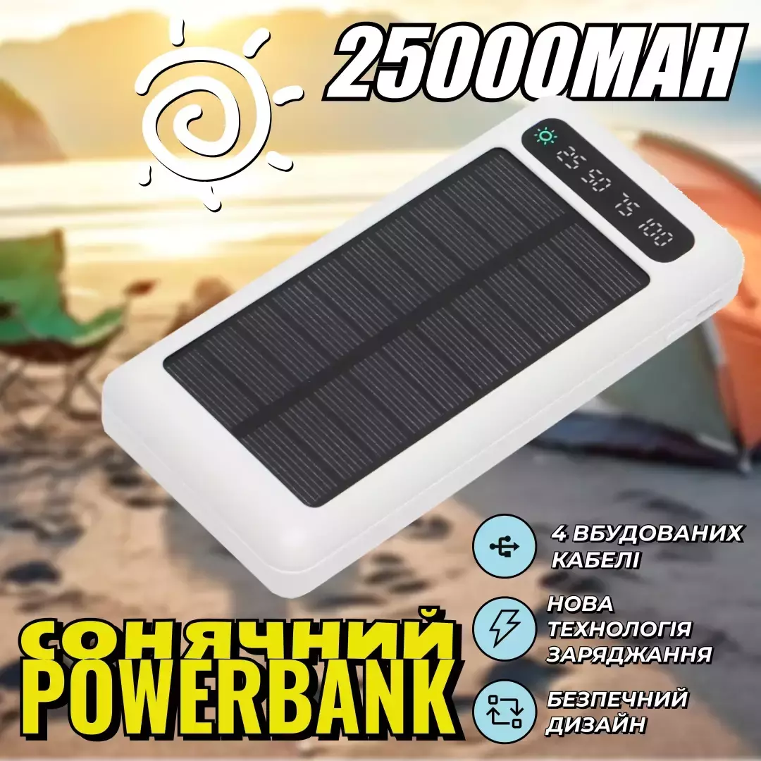 Power Bank solar с солнечной панелью Thatti FO-9-03 25000 mAh Повербанк от солнца + 4 встроенных кабеля