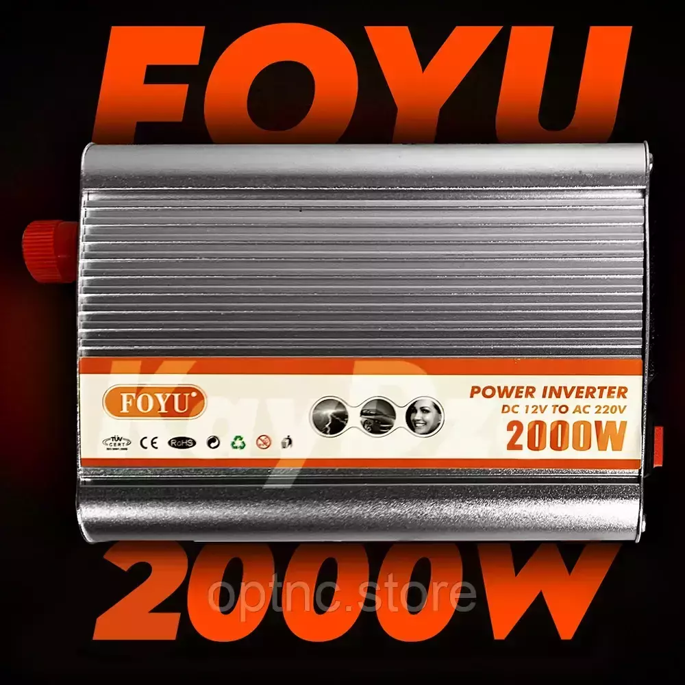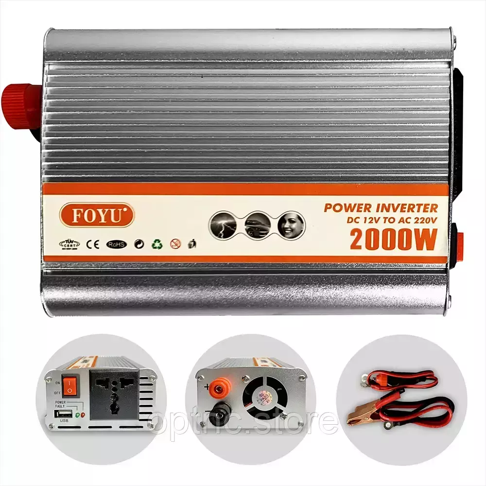 Преобразователь напряжения FOYU FO-Q 2000W — надежное решение для питания вашей электроники и бытовой техники в местах, где нет доступа к сети 220 В, но есть возможность подключиться к источнику питания 12 В (например, автомобильный аккумулятор, лодка, кемпер, солнечные батареи).