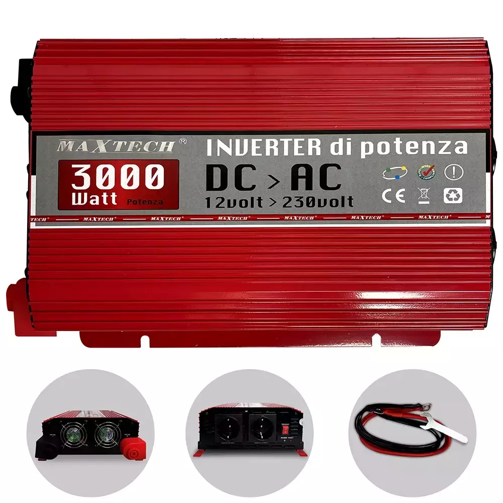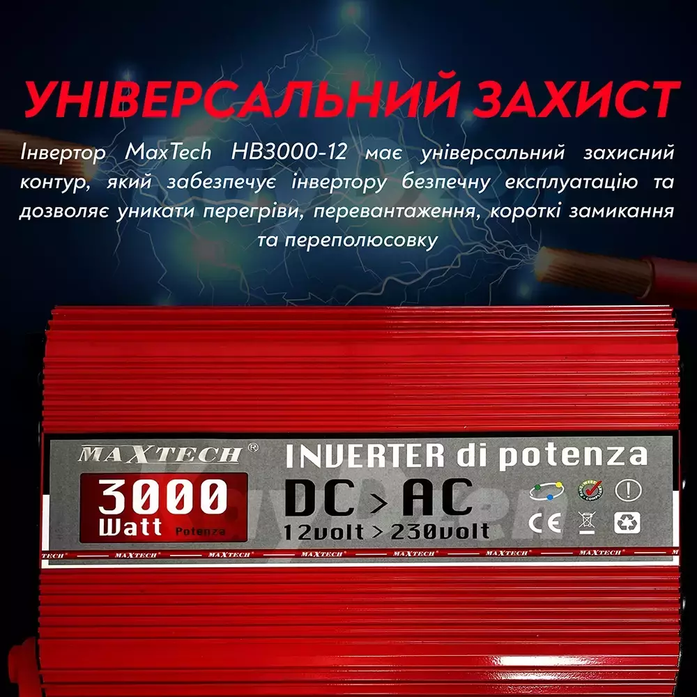 Преобразователь напряжения MaxTech HB3000-12 3000W продукт, который позволит Вам использовать в ситуациях и местах, где нет возможности подключения к сети 220 В, но есть возможность подключения и подключения к любому источнику питания 12 вольт (автомобильный аккумулятор, лодка, кемпер, солнечные батареи).