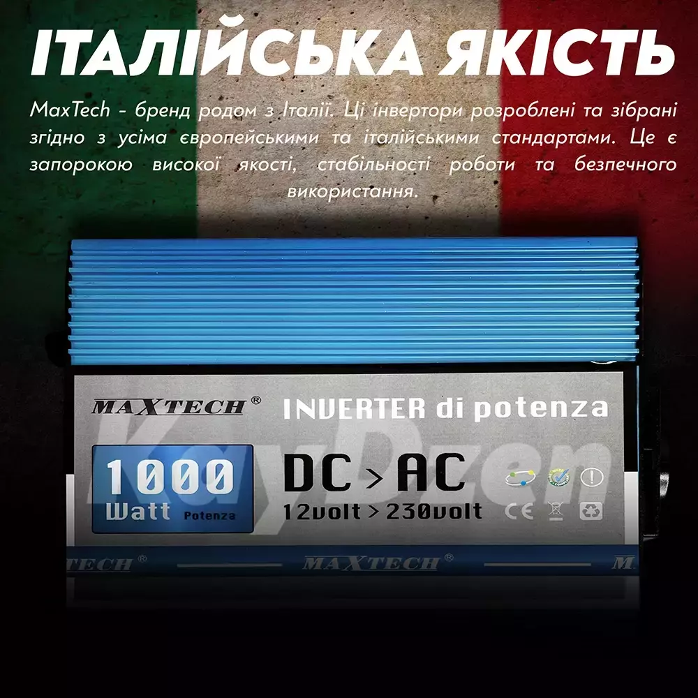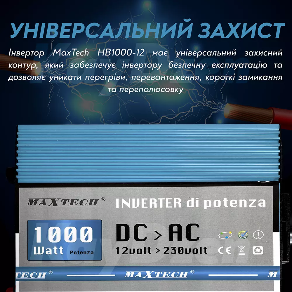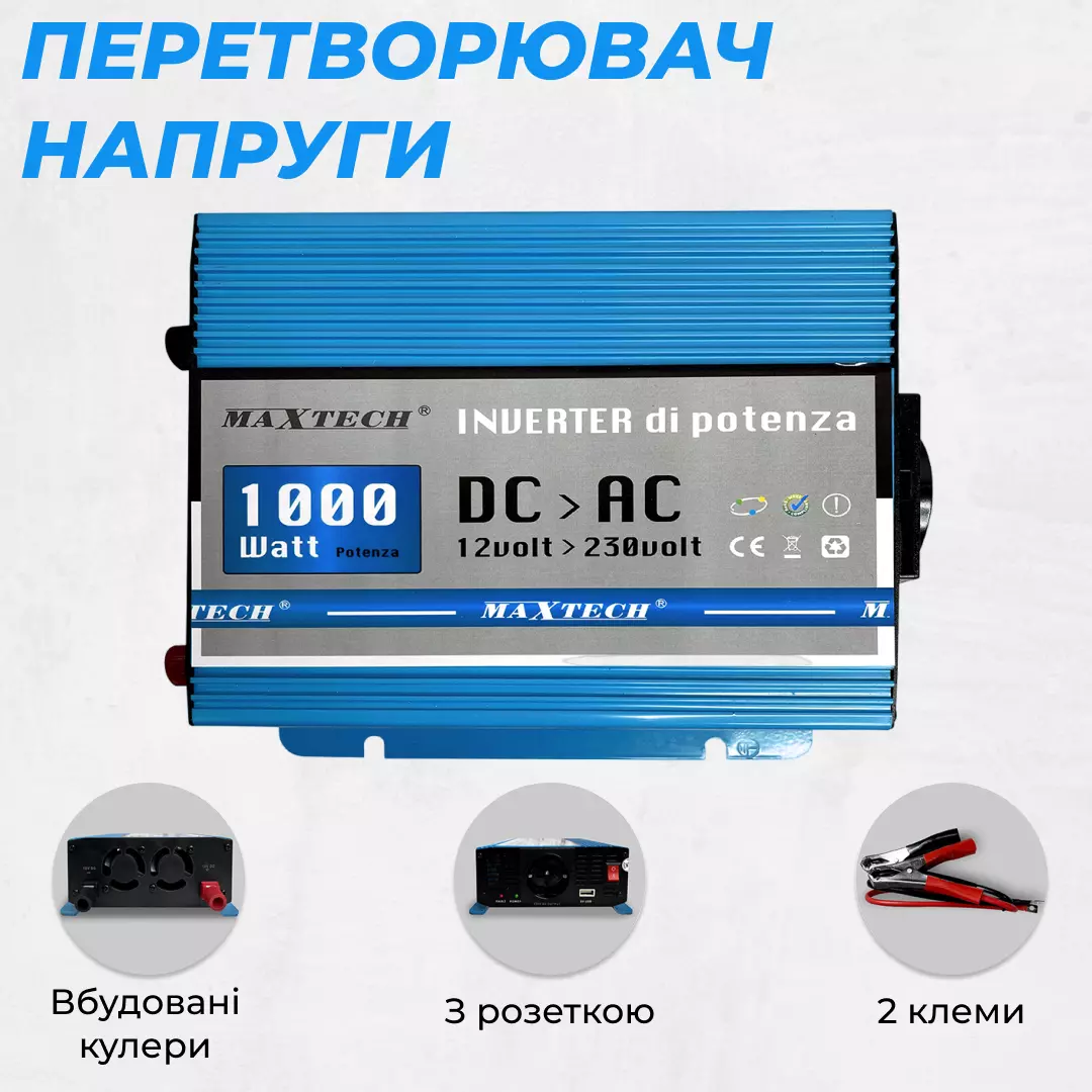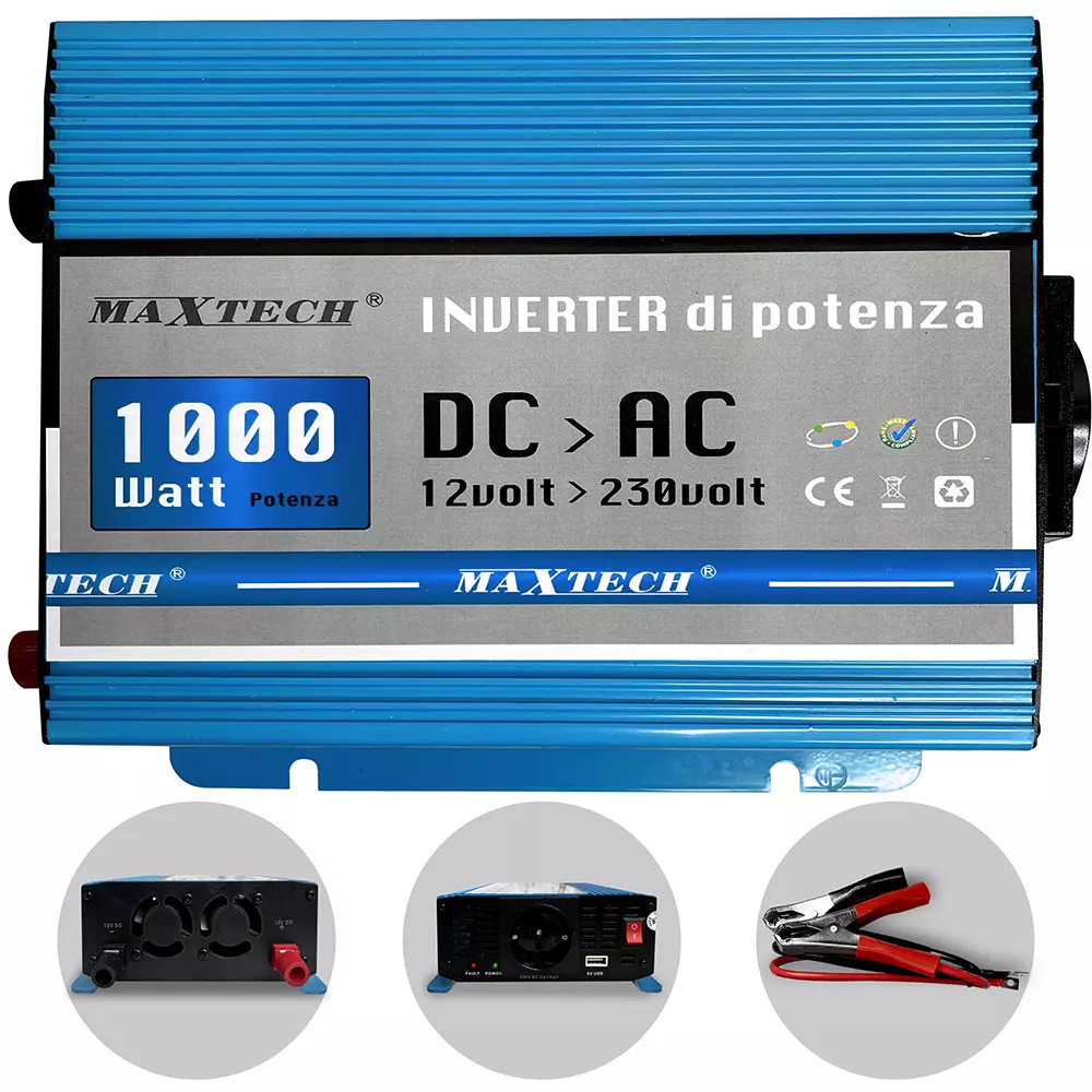 Преобразователь напряжения MaxTech HN1000-12 1000W продукт, который позволит Вам использовать в ситуациях и местах, где нет возможности подключения к сети 220 В, но есть возможность подключения и подключения к любому источнику питания 12 вольт (автомобильный аккумулятор, лодка, кемпер, солнечные батареи).