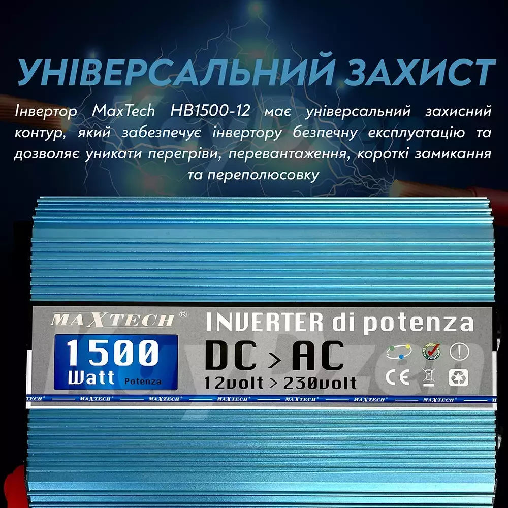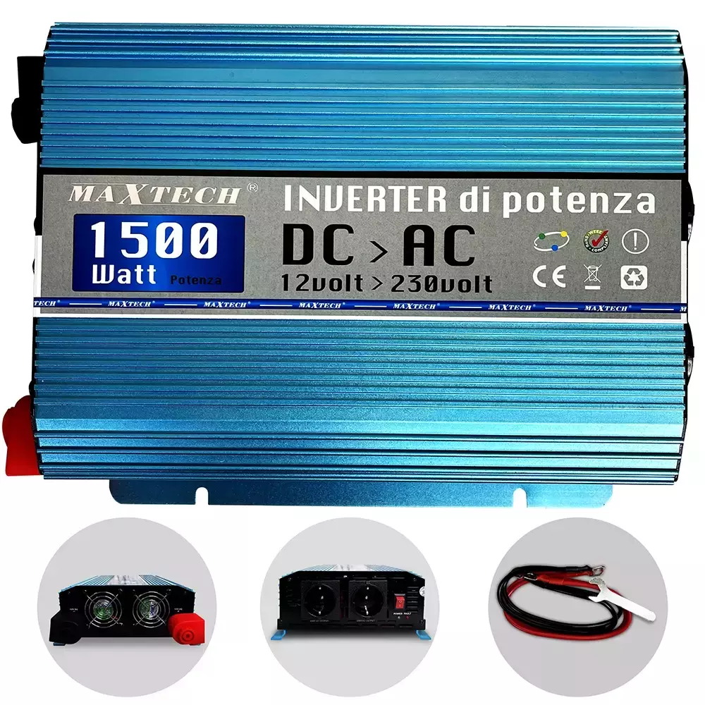 Преобразователь напряжения MaxTech HN1500-12 1500W продукт, который позволит Вам использовать в ситуациях и местах, где нет возможности подключения к сети 220 В, но есть возможность подключения и подключения к любому источнику питания 12 вольт (автомобильный аккумулятор, лодка, кемпер, солнечные батареи).