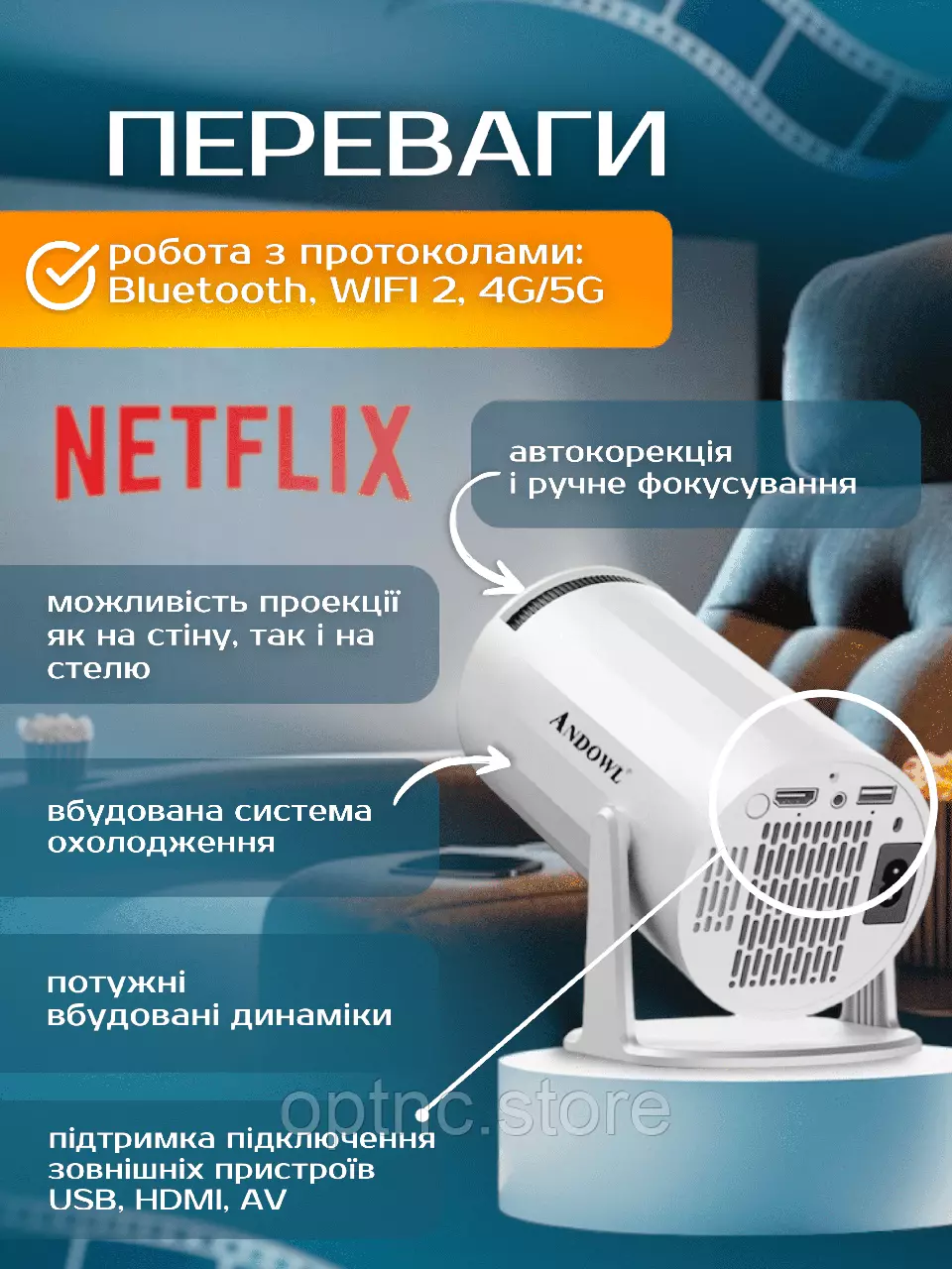 Профессиональный смарт проектор Andowl PR80 4K Ultra HD Pro с WIFI видеопроектор для дома и офиса портативный