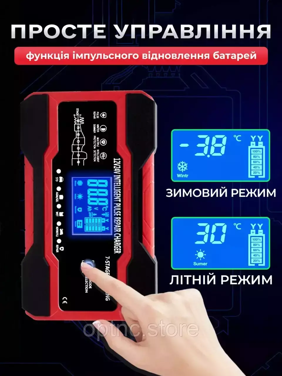 - Выберите режим: используйте большой ЖК-дисплей для выбора нужного режима зарядки (летний/зимний).