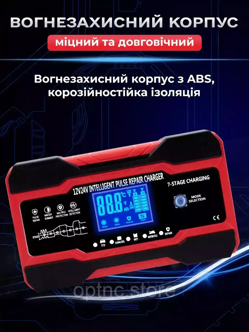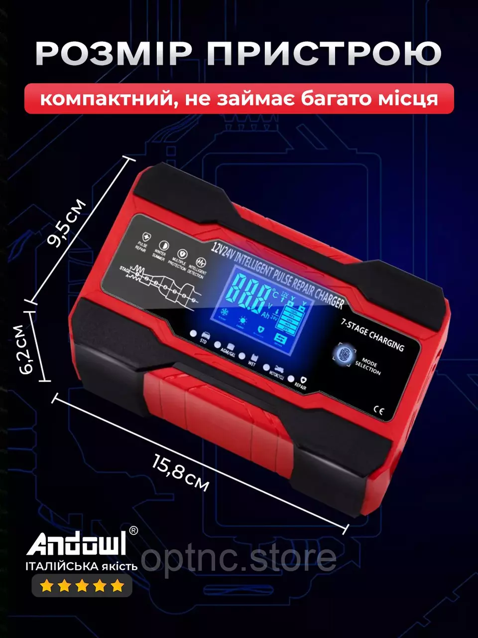 - Интеллектуальная зарядка: 7 ступеней настройки позволяют адаптировать процесс зарядки под индивидуальные нужды вашего аккумулятора