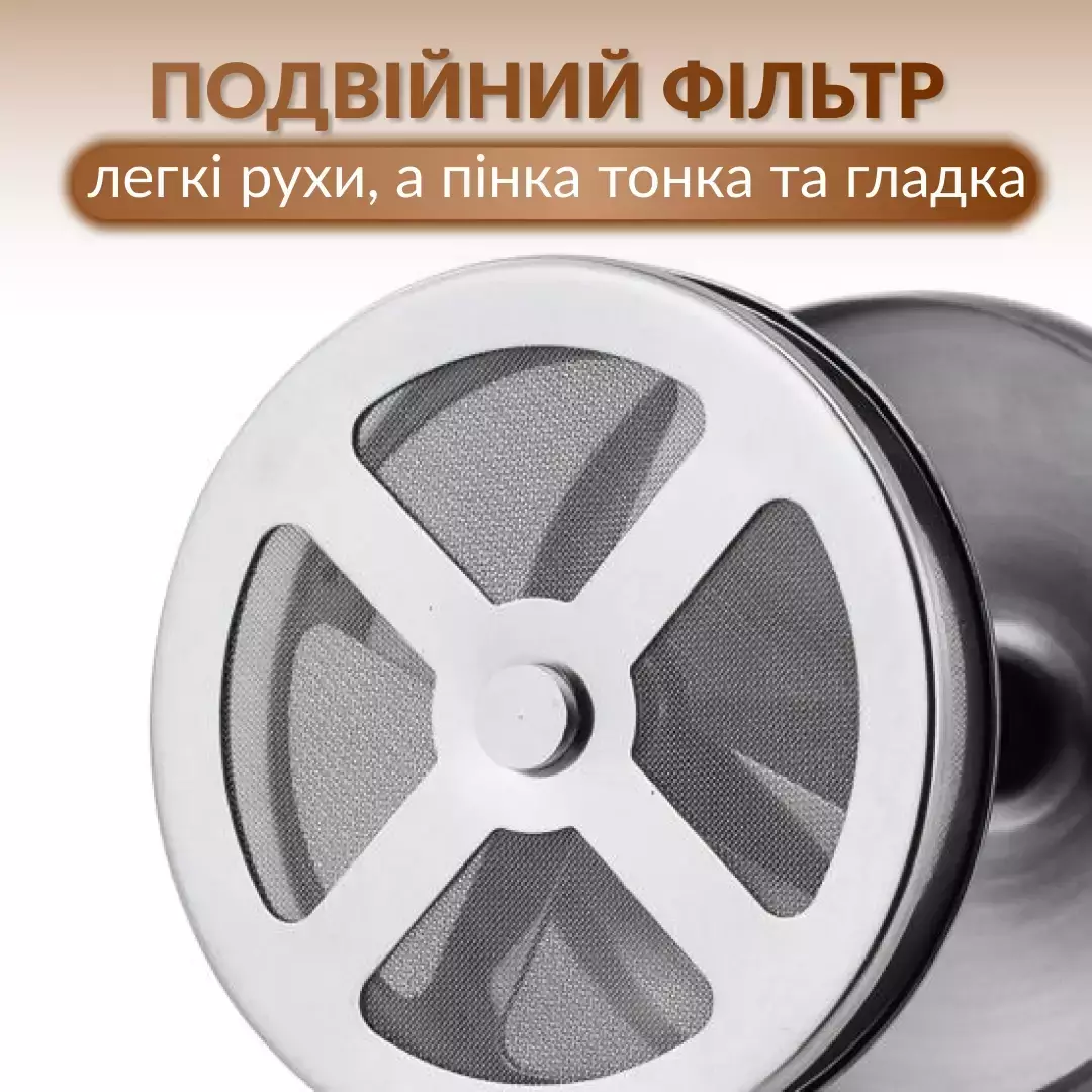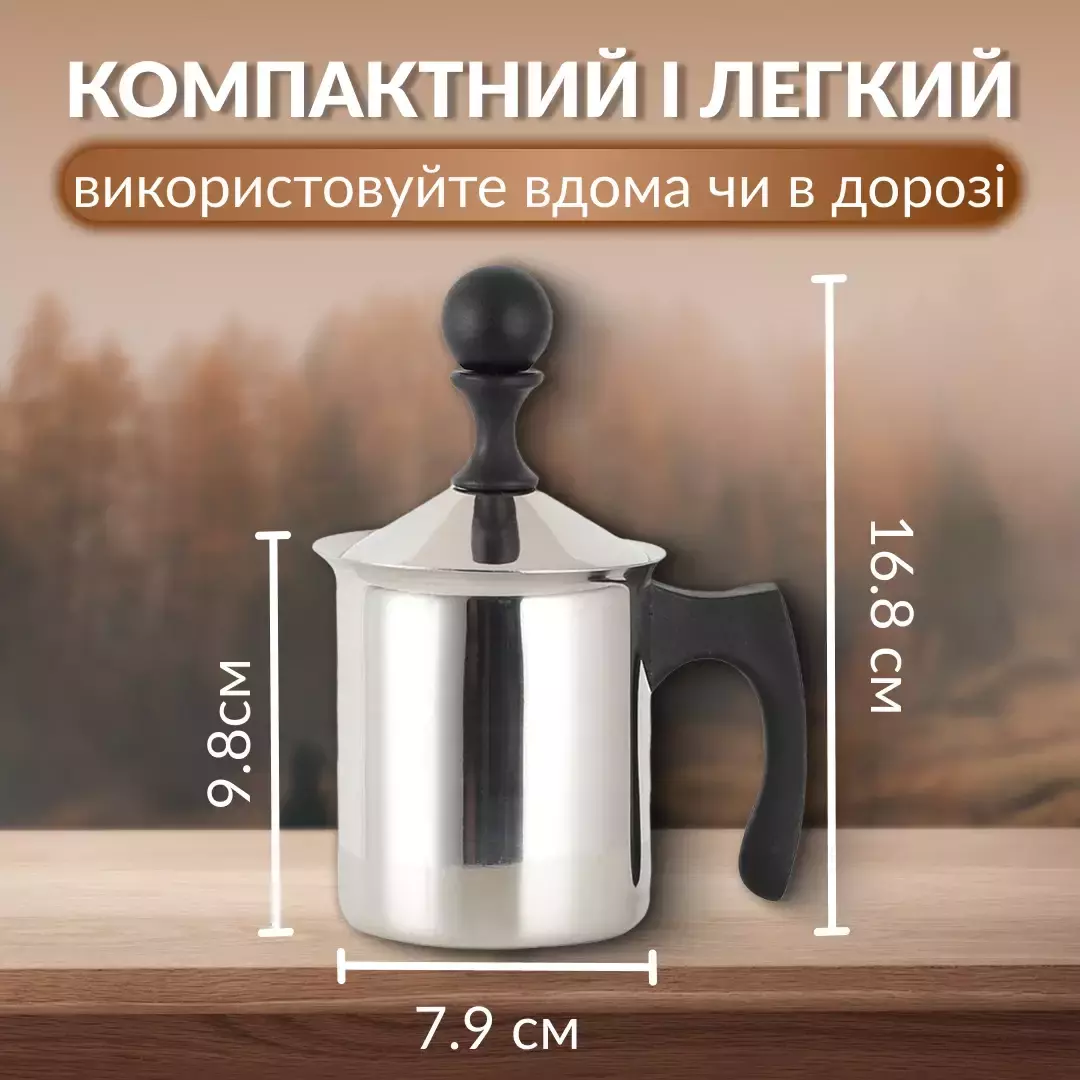 Ручной вспениватель для молока 400 мл Kamille Frother KM-5841 алюминиевый капучинатор домашний Italy