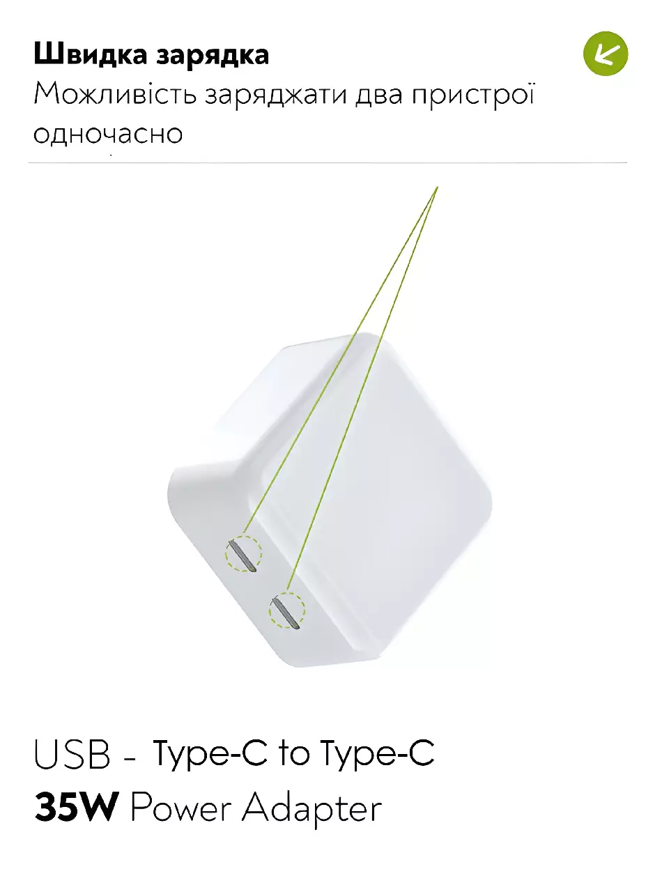 С двумя портами USB-C, это зарядное устройство обеспечивает впечатляющую гибкость и возможность одновременной зарядки двух устройств. Благодаря мощности 35W, оно предлагает высокую скорость зарядки, позволяя тебе быстро восстановить энергию своих устройств и продолжать использовать их без прерываний.