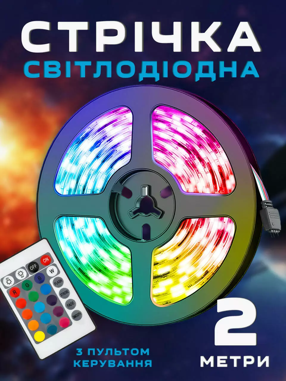 Светодиодная led лента rgb 2 м FOYU 5V/DC 2 м с пультом 16 цветов самоклеющаяся водонепроницаемая питание от