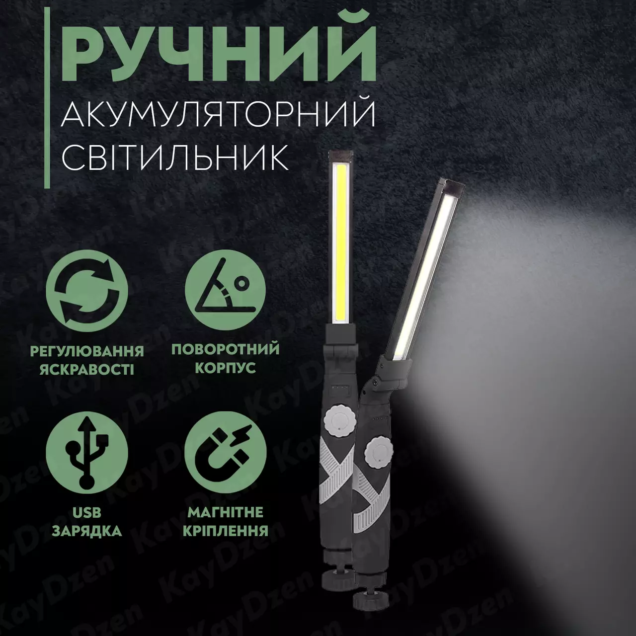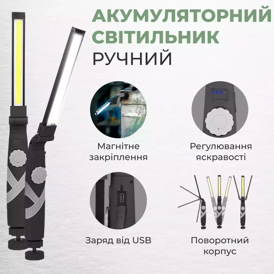 Светодиодный поворотный LED фонарь Work Lights с регулировкой яркости и магнитным держателем