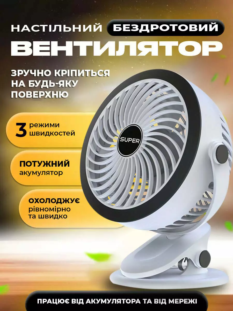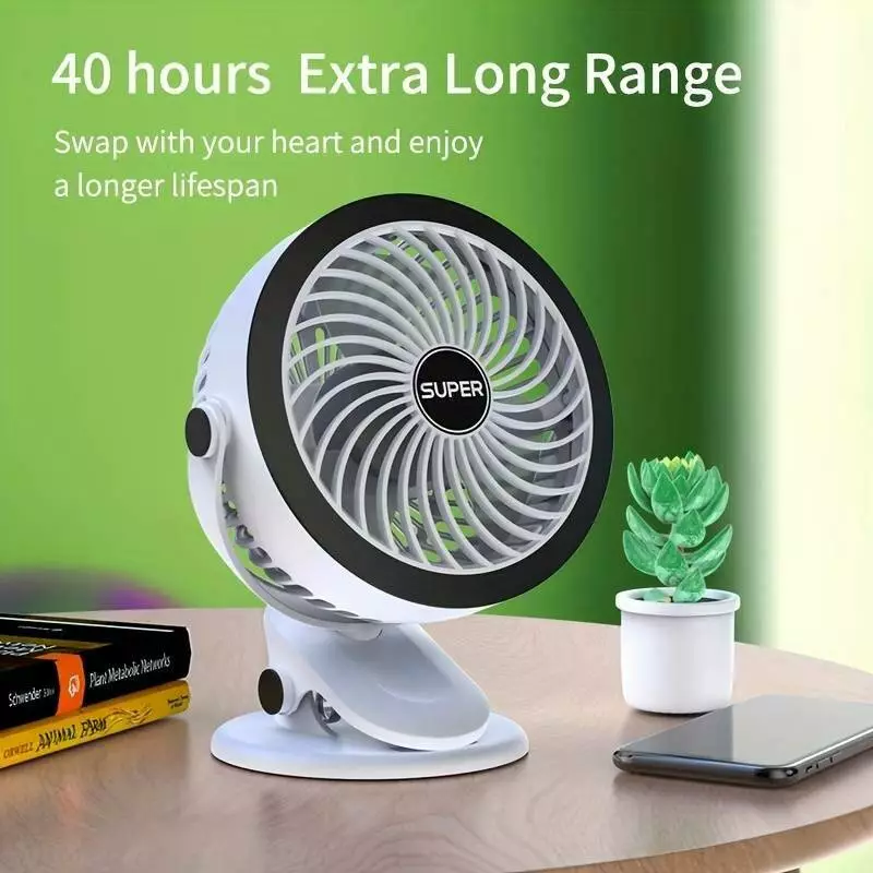 Тихий мощный usb мини вентилятор Andowl QF200 компактный с аккумулятором на прищепке (Черный)