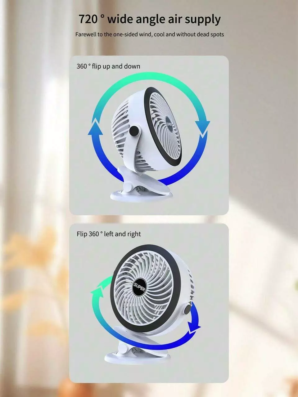 - Прочный зажим: Портативный вентилятор оснащен надежным зажимом, который легко крепится на предметах толщиной до 1 дюйма. Губчатая прокладка на внутренней стороне зажима предотвращает появление царапин.