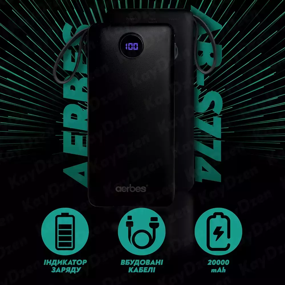 УМБ Aerbes AB-S774 Power Bank 20000 mAh Внешний аккумулятор Черный (повер банк, портативная батарея) Италия +