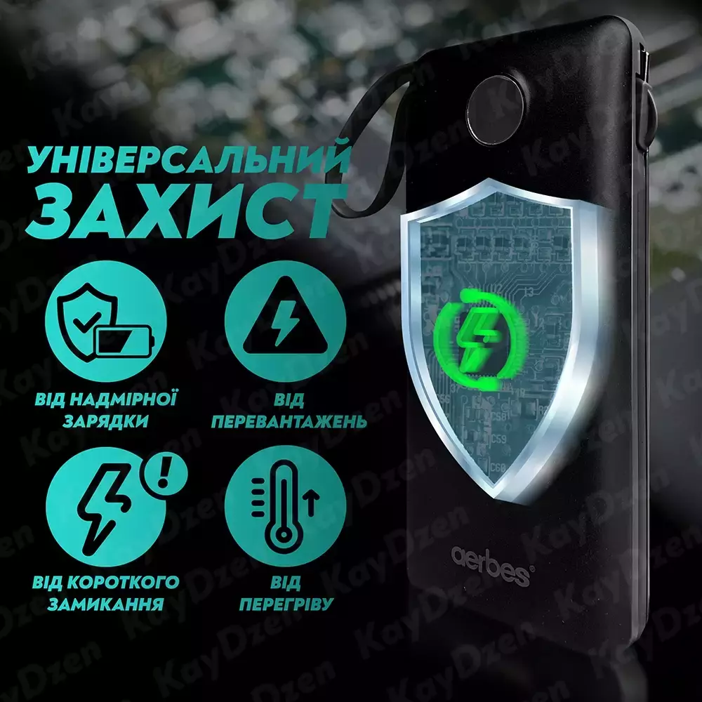 Внешний аккумулятор Power Bank Aerbes AB-S774 20000 mAh – подходит для зарядки любых устройств, как для айфона, андроид, так и для других устройств с USB входом. На поверхности аккумулятора установлен дисплей, и уровень заряда батареи можно легко и четко проверить. Нет риска разрядки аккумулятора, Вы всегда можете знать уровень заряда аккумулятора. Имеет как Lightning, так и Type-C и MicroUSB, благодаря этому нет внешний аккумулятор подходит для всех Ваших устройств. Благодаря встроенной защите, этот аккумулятор может автоматически определять и изменять зарядный ток в соответствии с различными устройствами, чтобы защитить ваши устройства от чрезмерного тока, перегрева и перегрузки, без риска безопасности.