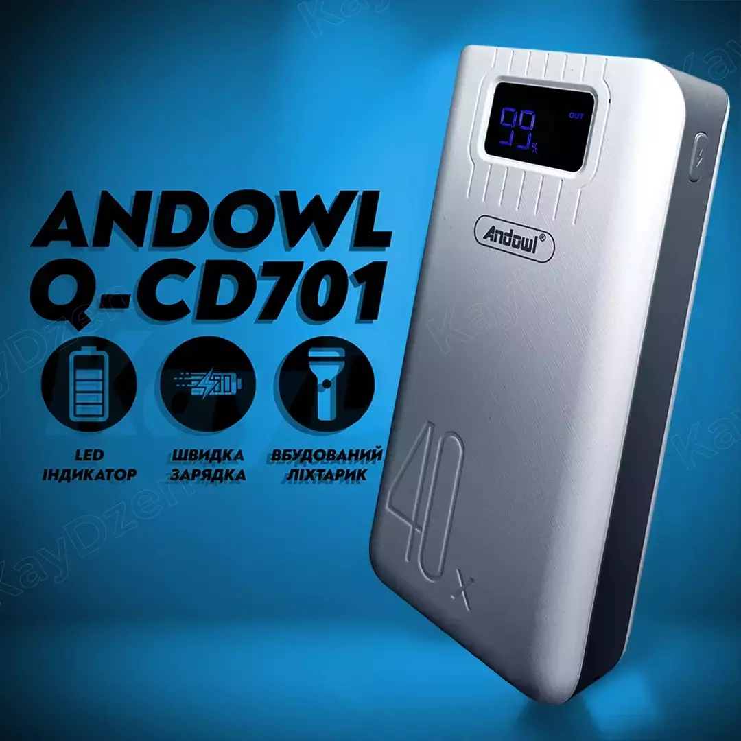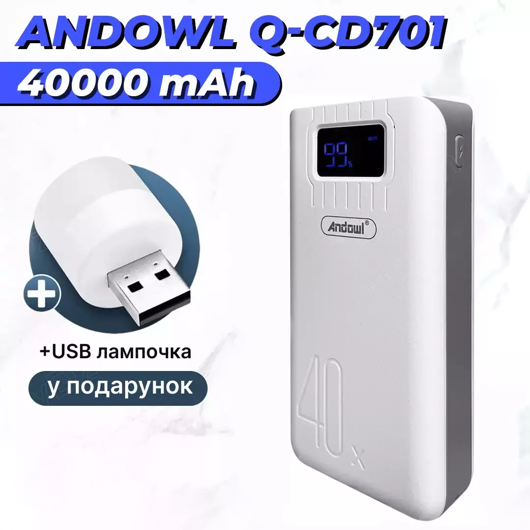 УМБ Andowl Q-CD701 Power Bank 40000 mah Внешний аккумулятор (повер банк, портативная батарея) Белый/Серый +