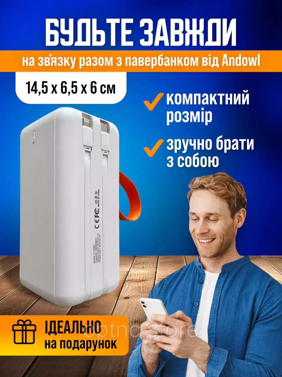 УМБ Andowl Q-TD88 50000 mah 22.5W Fast charge PD20 Power Bank быстрая зарядка повербанк (Белый)