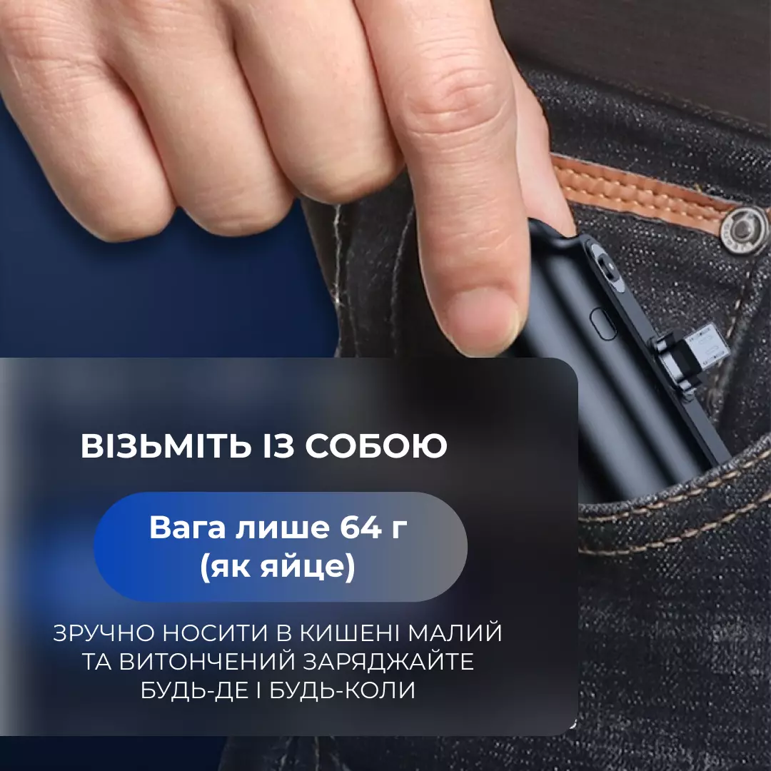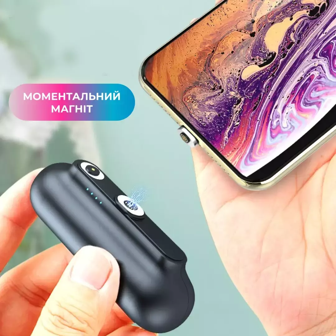 Мини-зарядное экстренное устройство Powerbank для iPhone и Андроидов. Портативный Power Bank с встроенными кабелями и магнитным интерфейсом.