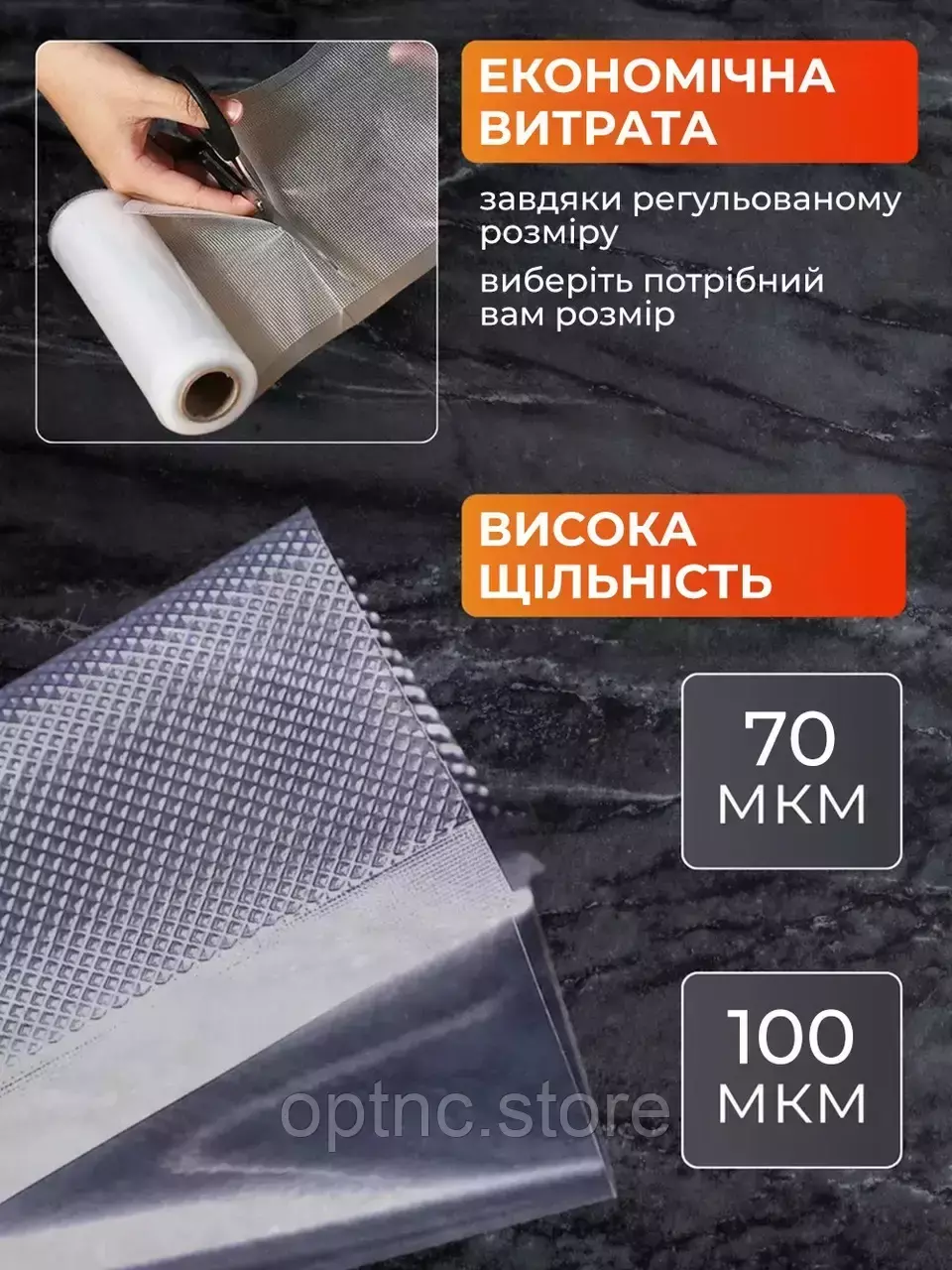 - Надежность: гофрированная текстура обеспечивает оптимальное вакуумирование и защищает продукты от повреждений.