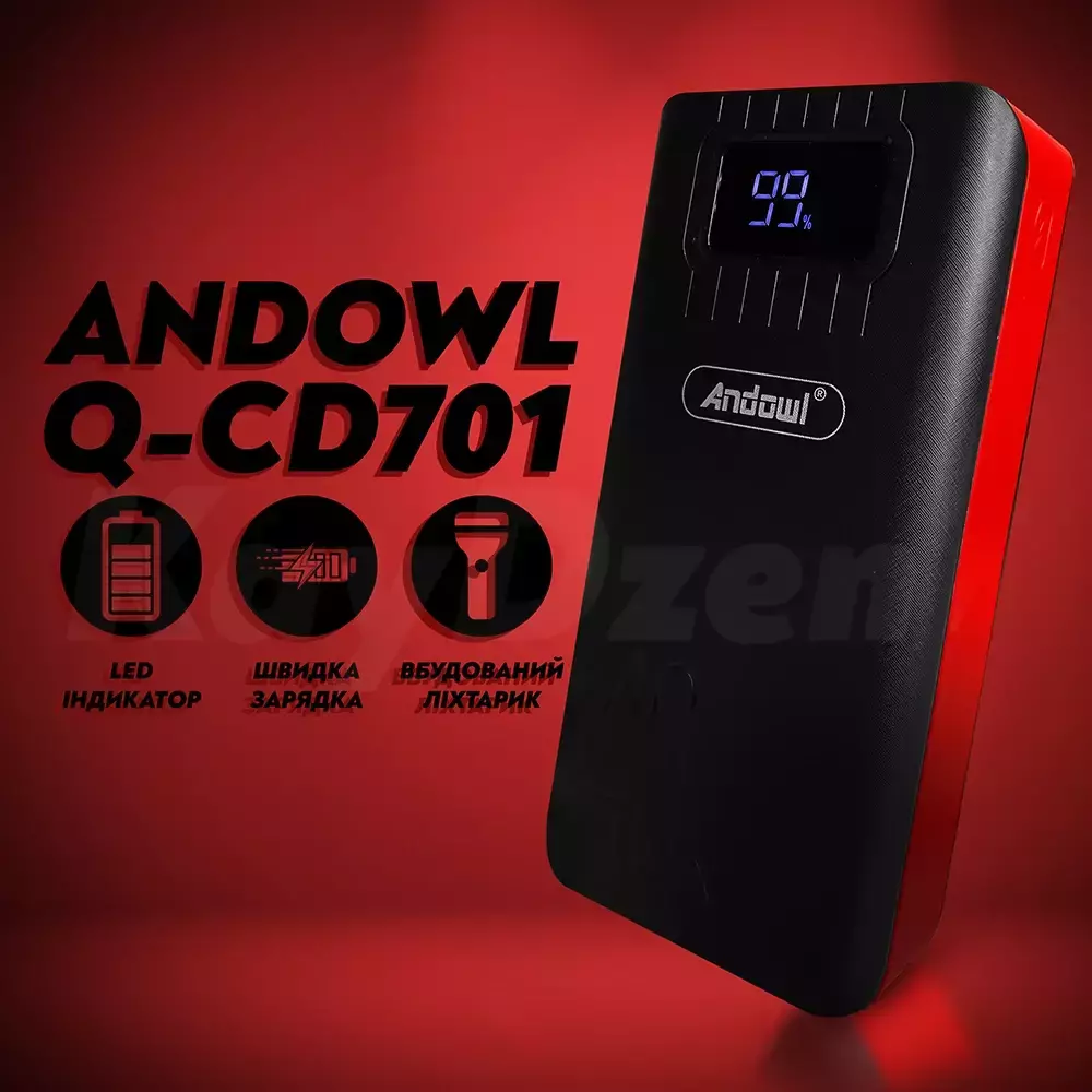 Power Bank 40000mah Andowl Q-CD701 – внешний аккумулятор на 40000 мАч, способный заряжать 2 телефона одновременно. Сам повербанк заряжается кабелем micro-USB или Type-C или Lightning. Благодаря поддержке самых распространенных технологий быстрой зарядки Quick Charge 3.0 и Power Delivery, на зарядку совместимых моделей гаджетов и самой портативной батареи уходит меньше времени. Текущий уровень заряда в процентах отображается на маленьком экране. Встроенный фонарь не только поможет осветить темное пространство, но и заменит настольную лампу.