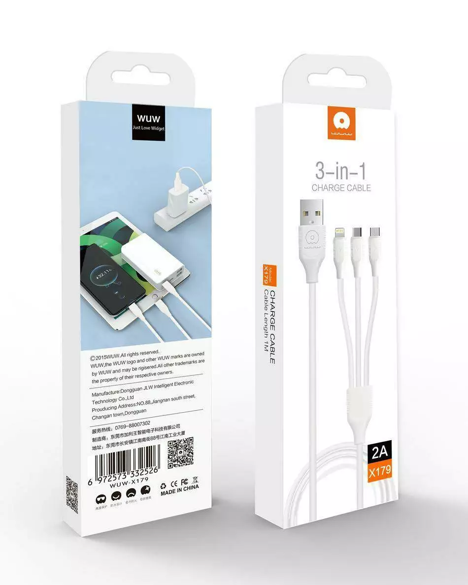 Зарядный кабель 3в1 WUW X179 USB - Lightning Type-C micro USB 1м 2А
